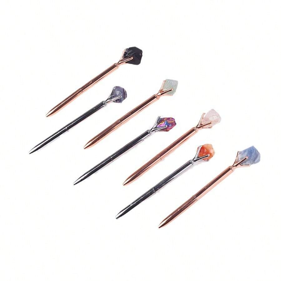 1pc Natural Crystal Raw Mineral Specimen Rotating Metal Ball Pen, Creative Gift Stationery