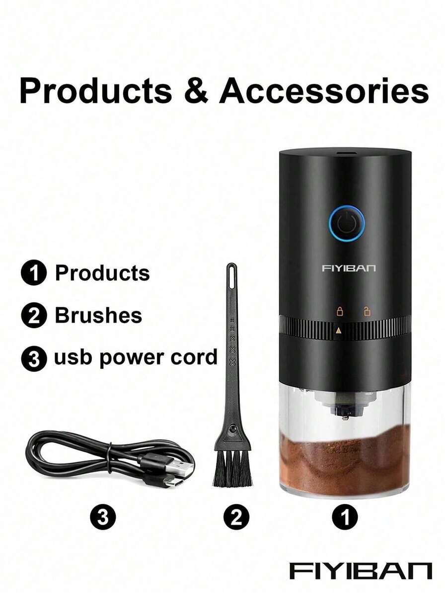 1pc USB Rechargeable Electric Coffee Grinder, Compact Portable Coffee Grinder With Professional Ceramic Grinding Core And Adjustable Grind Settings, Suitable For Home, Office, Travel, School And More