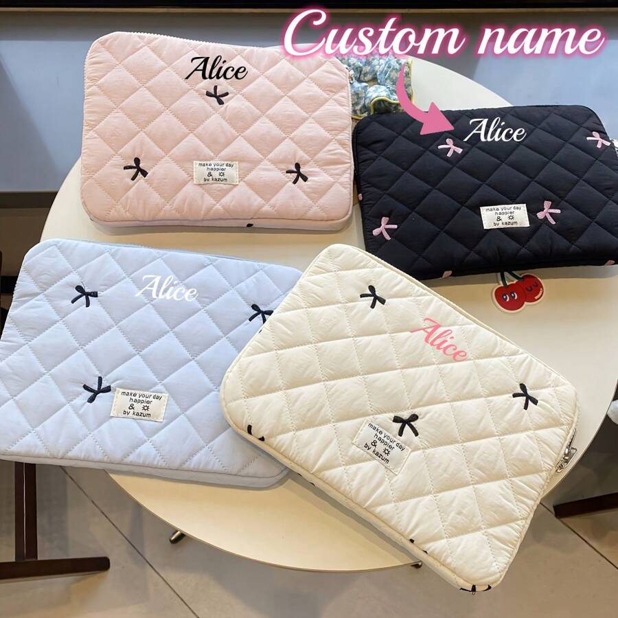 1pc Customized Embroidered Name Bow Laptop Sleeve - Polyester Material, Plaid Pattern, Personalized Name Computer Bag, Fits 10/11", 13/14", 15/15.6" Tablets And Laptops, Suitable For Office, Business, Gifts, Birthday, Friends