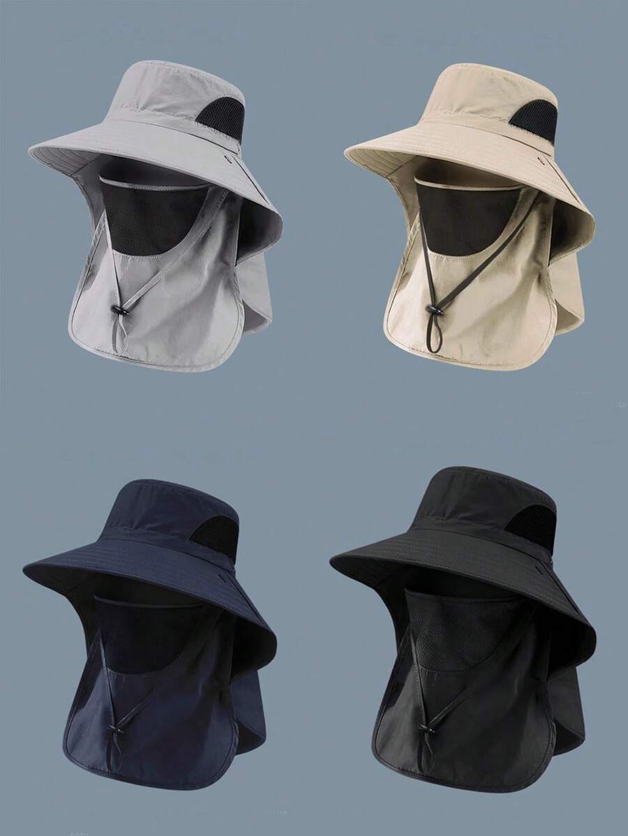 1pc New Spring/Summer Outdoor Sunscreen Bucket Hat With Mask Protection, European Style Cowboy Hat, Large Brim, Sun And UV Protection For Climbing, Fishing And Hiking, Solid Color Casual Polyester Embroidered Wind & UV Resistant