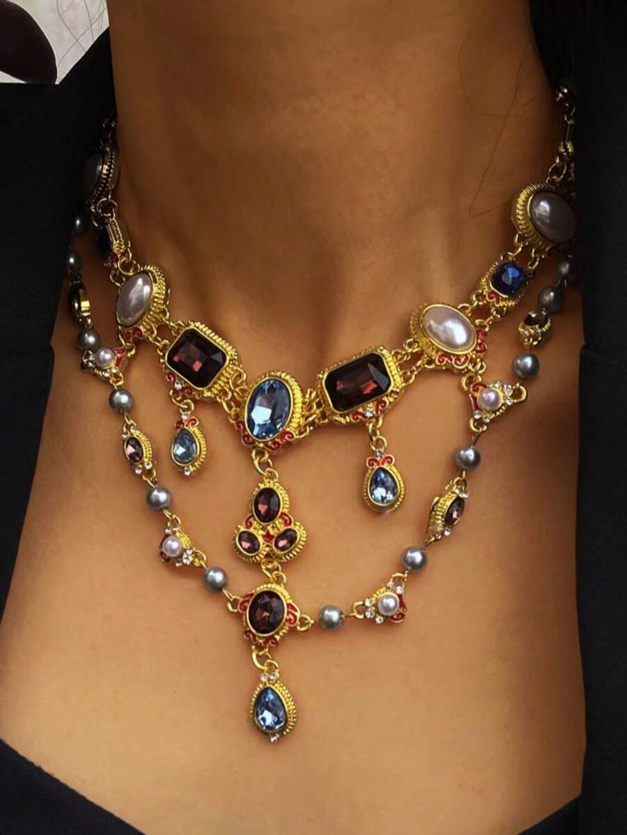 1pc Retro Vintage Palace Style Crystal Fringed Choker Necklace, Suitable For Women's Daily, Festival, Party Wear