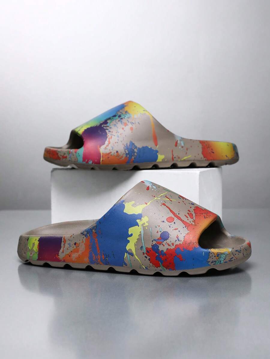 Plus Size Men's Fashion Versatile Durable Anti-Slip Cushion Beach Sandals, Waterproof Anti-Sweat Anti-Odor Rebound Colorblock Soft Bottom Slippers