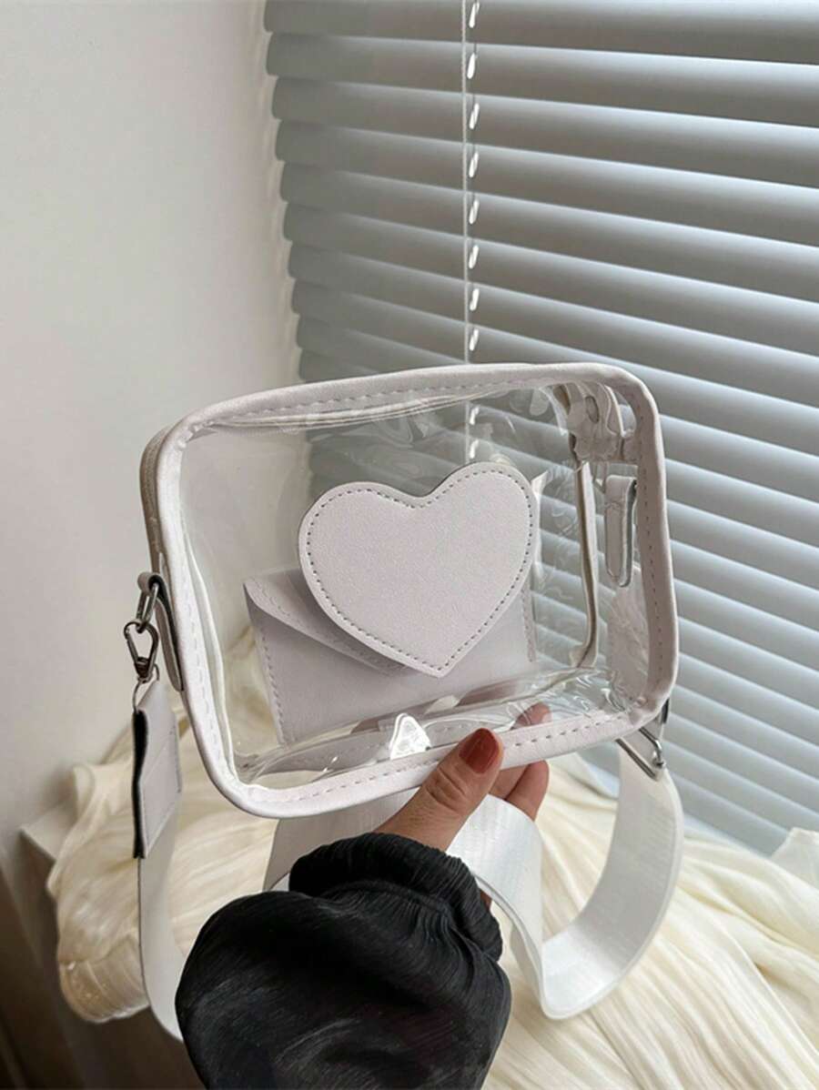 New Summer Transparent Girl Bag With Wide Strap, Heart Design Cross-Body Bag, Small Square Shoulder Bag, Personalized Phone Pouch