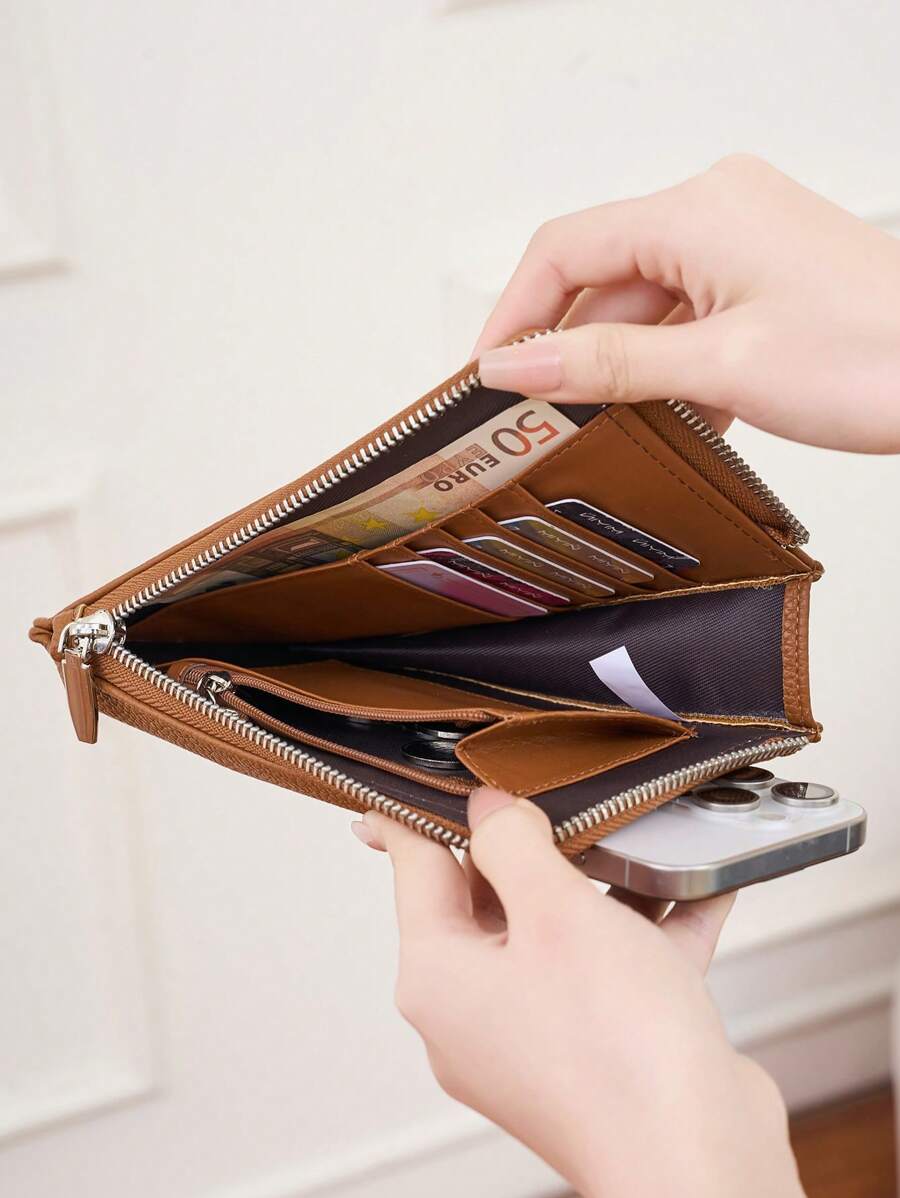 MIYIN New Women's Casual Zip Around Wallet & Mobile Phone Bag Fashion Minimalist Solid Color Crossbody Bag With Adjustable Strap Litchi Embossed Vertical Wallet With Card Slots & Front Pocket & Zipper Coin Pocket For Credit Card/ ID Card/ / Cash/Cell Phone/Bank Card For Lady & White-Collar Workers Shopping Travel Commute Office Work Phone Phone Pouch For Women Wallet Purse Wallet (Brown) Phone Case