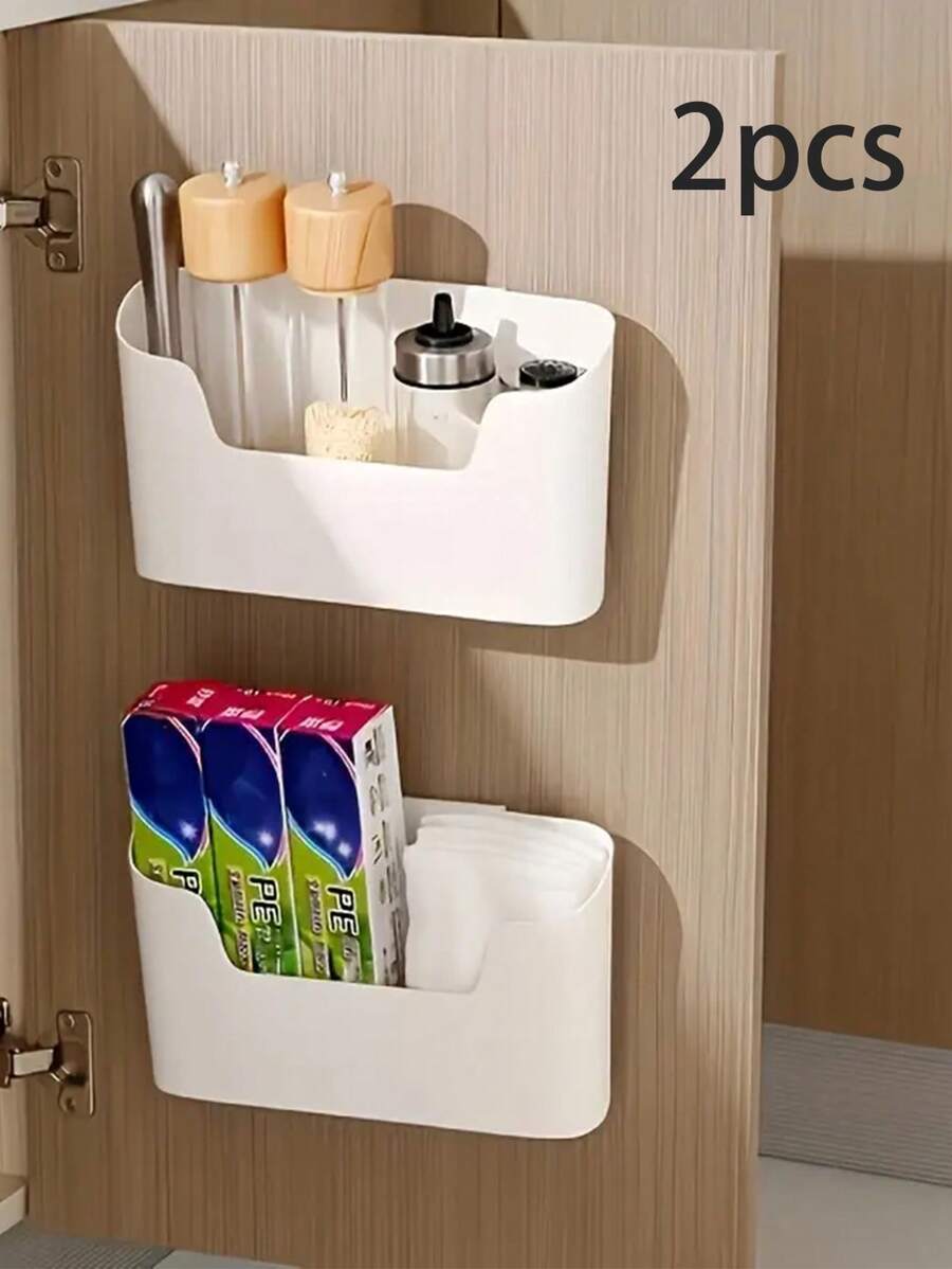 2pcs Convenient Wall-Mounted Storage Box For Kitchen, Bathroom, Office, Bedroom - Punch-Free Cabinet Door Organizer For Home Kitchen Supplies