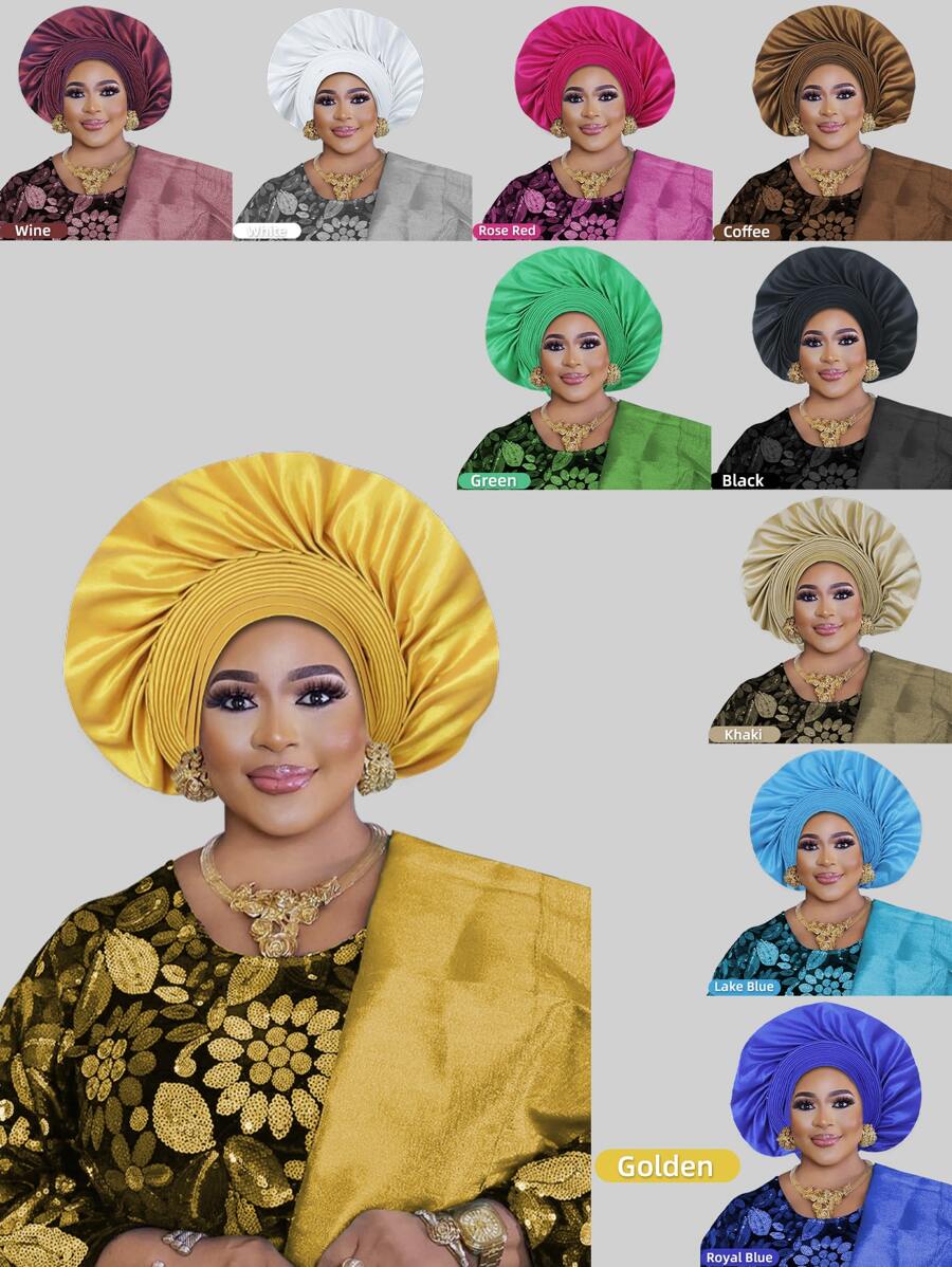 Elegant And Fashionable Auto Gele Headpiece, Nigerian Women's Traditional Wrapped Headwrap, Floral Print Fabric Handwoven Layered Fan Folding Hat, Suitable For Weddings, Parties And Other Special Occasions