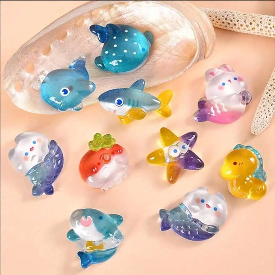 10pcs Cute Ocean Animal Resin Charms For DIY Hairclips And Jewelry Making, Decorative Non-Mosaic Craft Supplies For Shoes, Hats And Slime Decorations - Jewelry Making Parts And Accessories