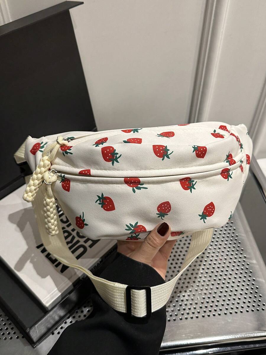Nylon Crossbody Bag, Solid Color Shoulder Bag, Women's Casual Sling Purse For Outdoor Sports, Strawberry Pattern