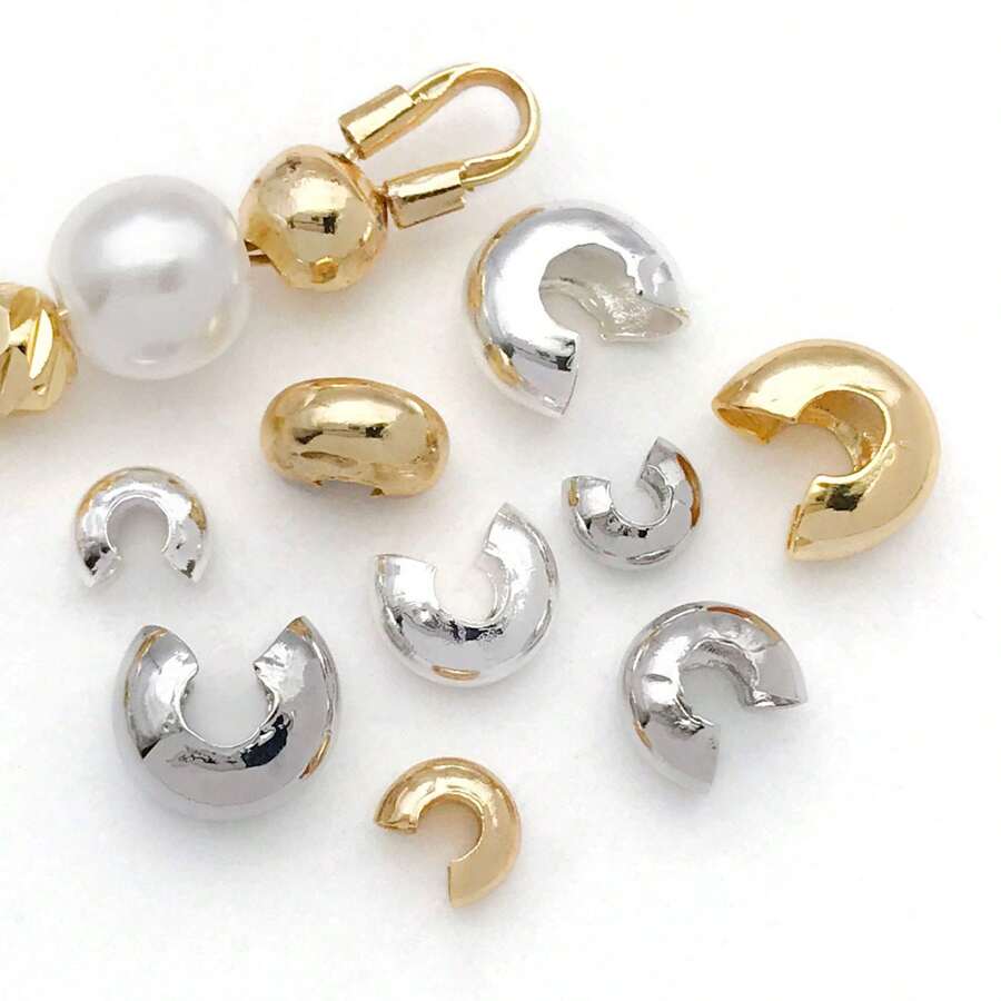 30pcs 18K Gold Plated Crimp Bead Covers Metal Half Round Open Copper Brass Crimp Beads Knot Covers Caps For Jewelry Making Findings 3/4/5mm