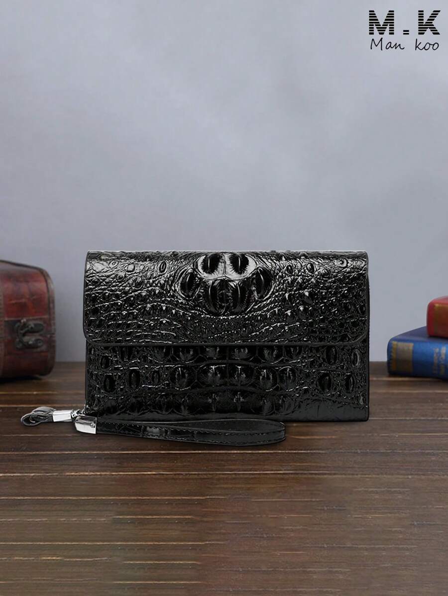 New Retro Men's Crocodile Embossed Clutch Bag, Dual Zipper Design, Large Capacity Handbag With Double Layer For Phone, Card And Cash, Fashionable Business Gift For Christmas (Random Crocodile Pattern) Mini Bag