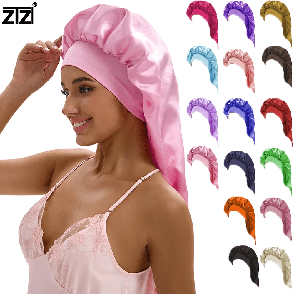 ZTZI Satin Long Bonnet Sleep Cap, Solid Color Casual Polyester Fiber(Polyester) Bonnet, Suitable For Home & Daily Wear, All Seasons