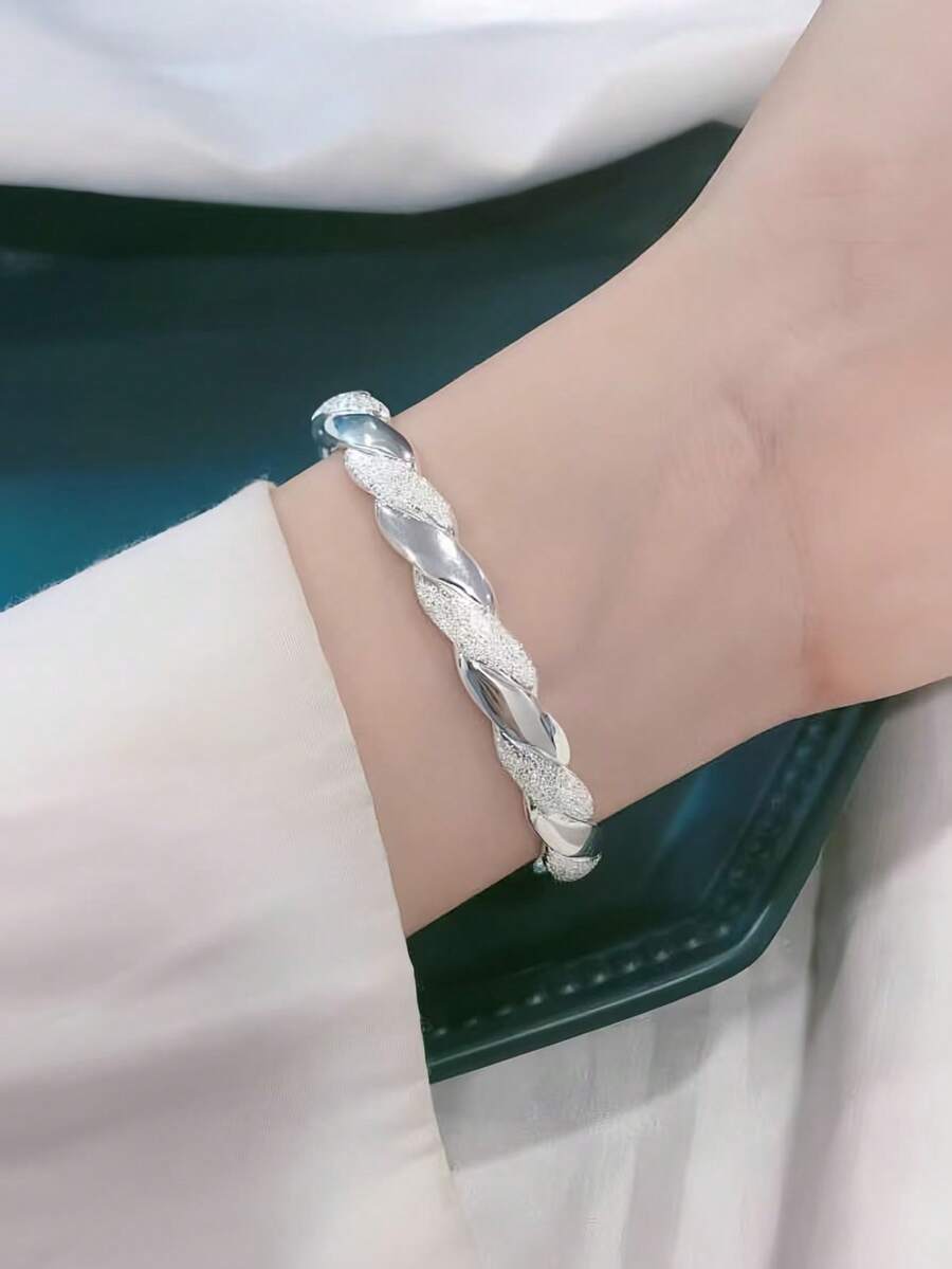Sterling Silver Bracelet Women Love Interwoven Nailed Sand Opening Bracelet Light Luxury Simple Daily Versatile Style Women's Mother's Day Gift