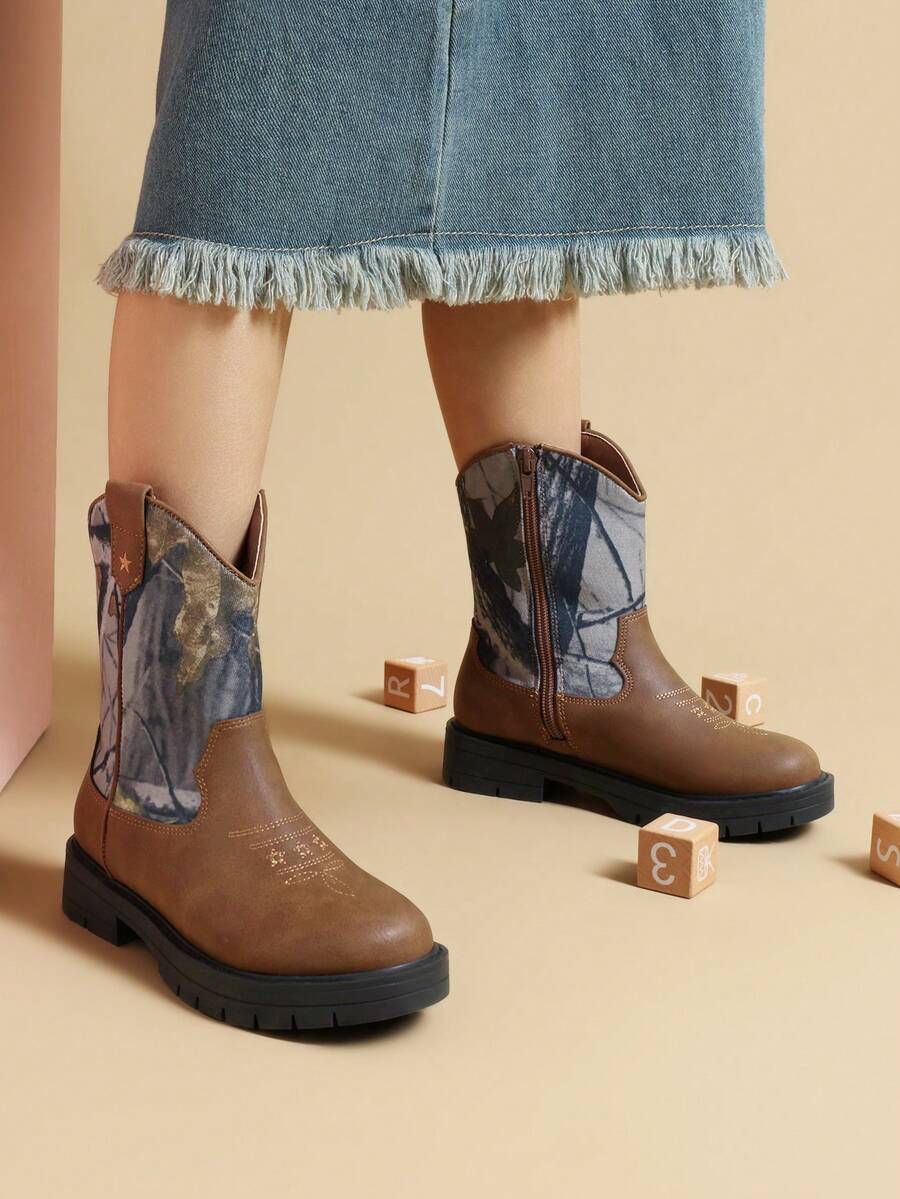 Boys Girls Cowboy Boots Kids Western Riding Mid Calf Boots For Little Kid Big Kid