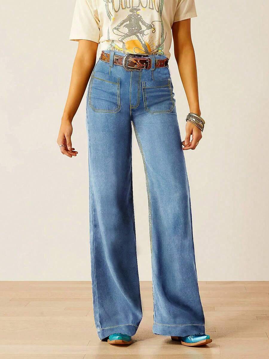 Women's Straight Leg Double Pockets Casual Versatile Long Denim Jeans