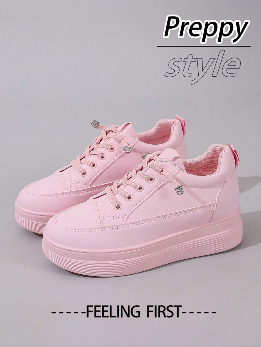 Beige Fashionable Versatile Slip-On Platform Thick Bottom Wedge Sneakers For Women, Suitable For Spring & Autumn