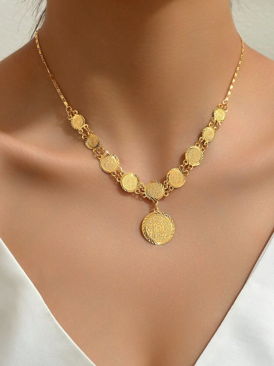1pc Fashion Minimalist Elegant Metal Coin Pendant Necklace For Women