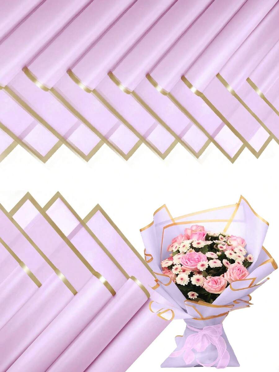 40 Sheets Of Flower Wrapping Paper, Korean Bouquet Wrapping Paper With Gold Edge Markers, Decorative Floral Supplies For DIY Crafts Gift Wrapping, 23" X 23", Wrapping Paper, Tissue Paper, Bouquet Supplies, Purple Tissue Paper For Gift Bags And Packaging, Multi-Color Gift Wrapping Paper, Valentine's Day Gift Wrapping Paper, Art Paper Crafts For Birthdays,