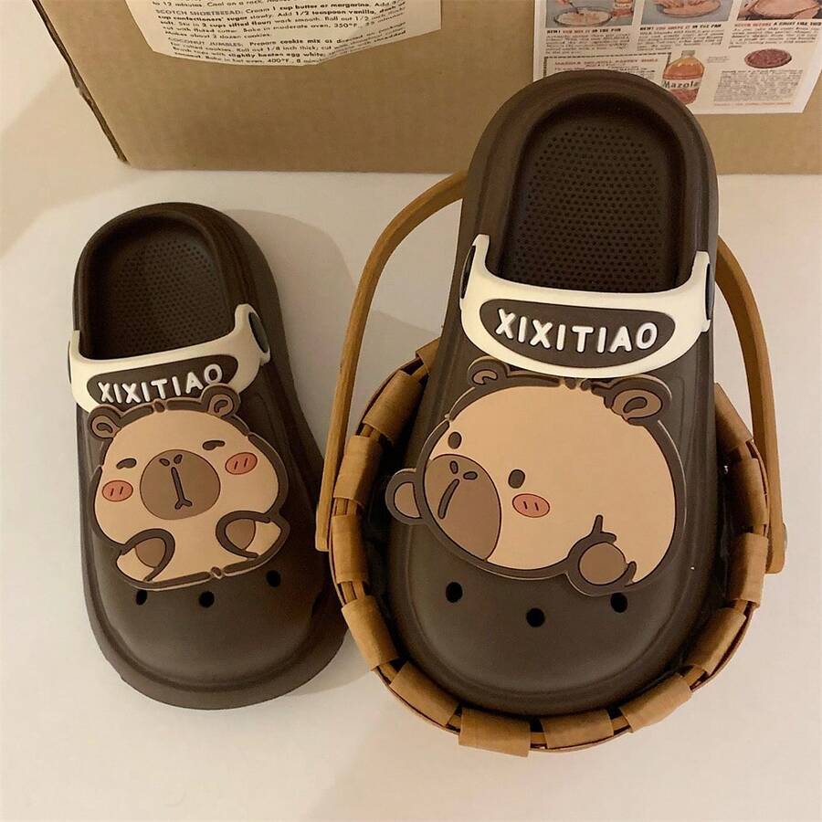 XIXITIAO Couple's Capybara Hollow Slippers, EVA Flat Non-Slip Casual Sandals, Suitable For Outdoor/Beach, Multiple Solid Colors Classic Flat Hollow Slippers, Fashionable Capybara Pattern Beach Outdoor Ladies Sandals