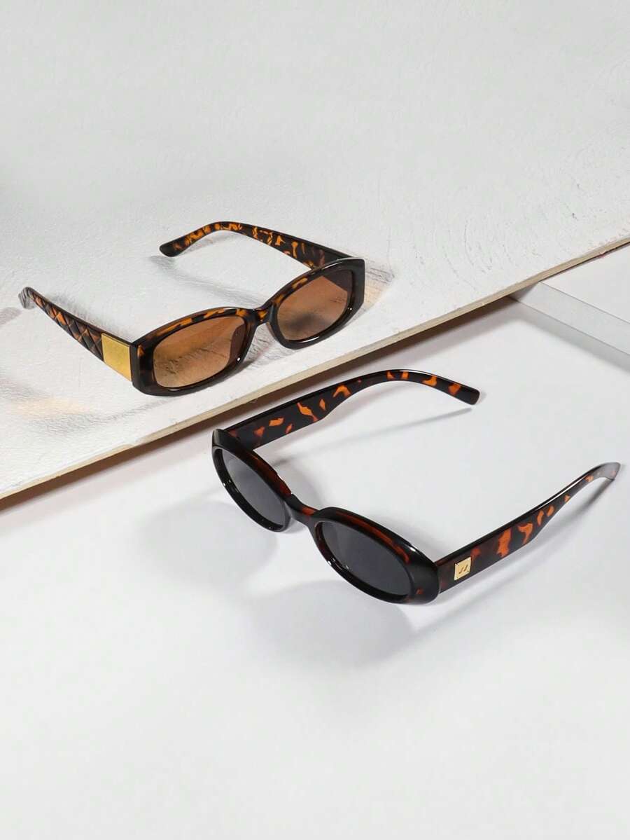 2pcs Classic Retro Small Frame Fashion Fashion Glasses, Suitable For Outdoor Travel For Summer Beach Vacation,Outdoor,Travel