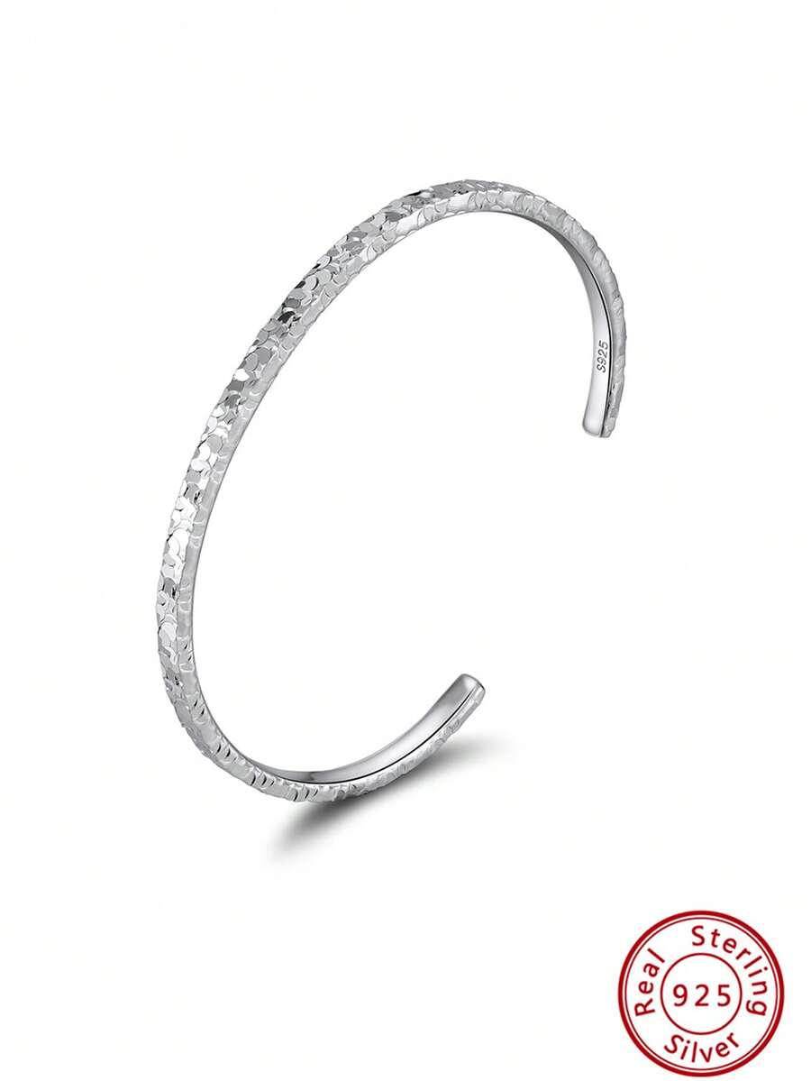 1pc Genuine 925 Sterling Silver Bangle Bracelet Rhodium Plated 5.5/6.5 Cm Inner Diameter Two Size Selection Hammered Texture Minimalism Style Dainty Jewelry Hand Accessory Suitable For Man & Women Daily Wearing, Party, Festival