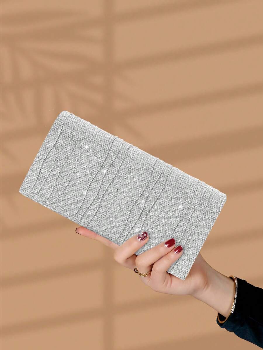 Glamorous Shiny Solid Color New Ladies Clutch Bag, Fashionable And Elegant Flap Small Square Bag With Hidden Card Slot Compartment, Perfect Party/Bride/College Student Evening Bag, Best Gift For Women