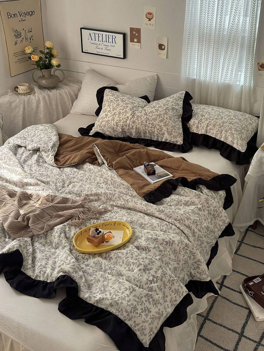 1pc Retro Style Summer Children's Quilt, Retro Lace Style Flower Plant Print Summer Quilt, Skin-Friendly, Soft And Comfortable, Suitable For Children's Rooms, Student Dormitories, Bedrooms, Children's Bedding