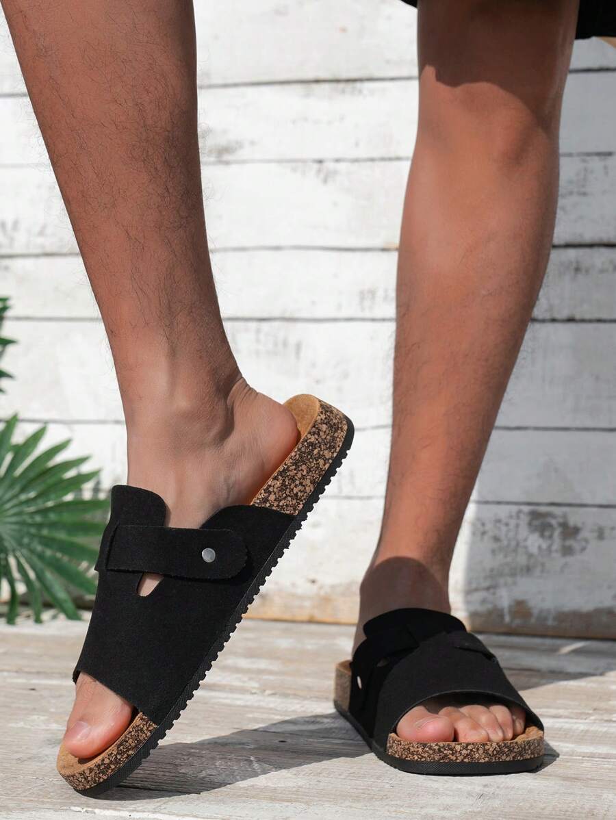 Couple's Summer Casual Men's Sandals, Minimalist Solid Color Slides - Casual Backless Slippers, Black Upper And Black Straps, Suitable For Indoor/Outdoor/Beach Wear
