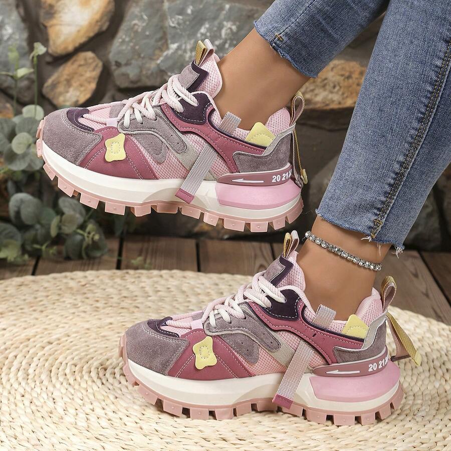 Women 2025 Spring & Summer New Casual Sports Shoes, Mesh Patchwork Breathable Comfortable Sneakers, Platform Chunky Sneakers, Outdoor Casual Sports Footwear For Ladies