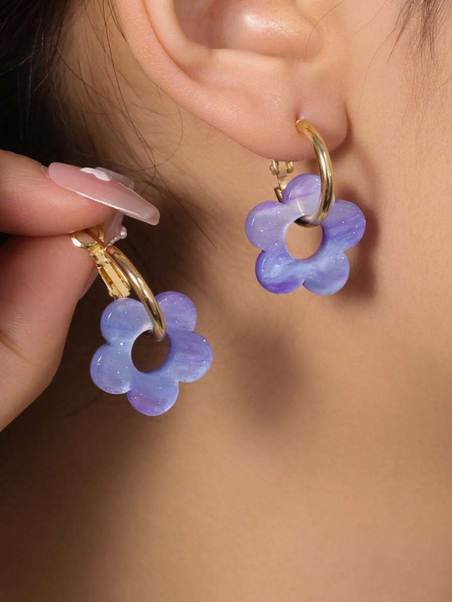 1 Pair Fashion Acrylic 5 Petal Floral Pendant Earrings, Suitable For Women, Perfect For Dating, Party, Gift, Clover Element