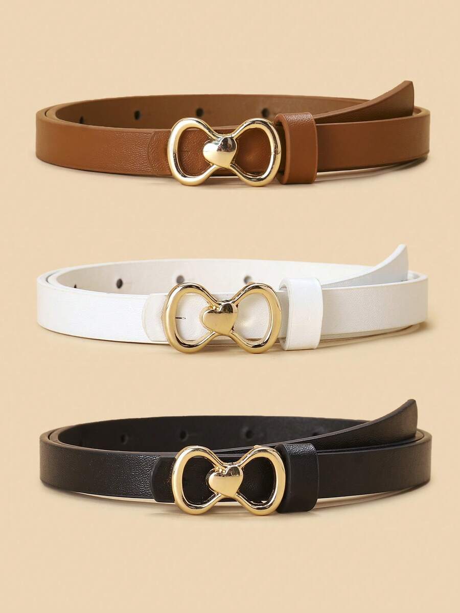 3pcs Kids New Thin Waist Belt, High Quality PU Jeans Dress Decor Waistband