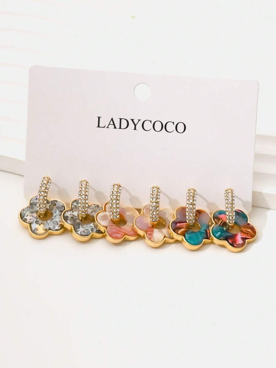 3 Pairs Fashionable Elegant Gold Rhinestone Hollow Pendant Earrings, Suitable For Women's Daily Wear