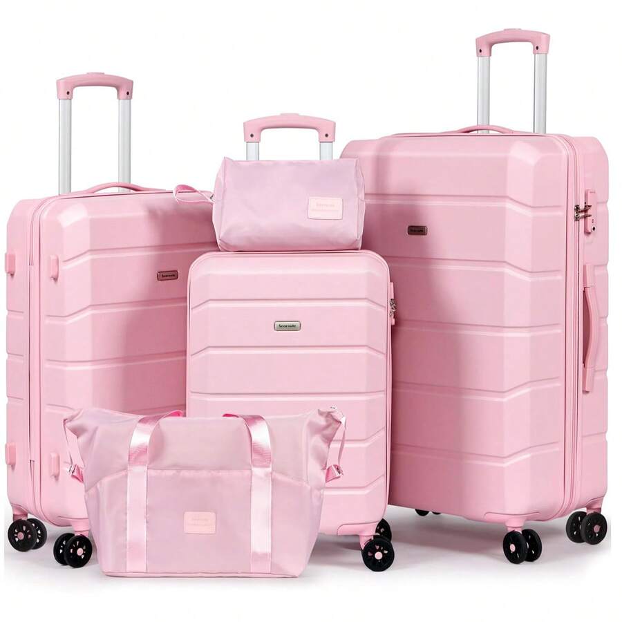 Luggage Sets Of 5 Piece, Lightweight Trolley Travel Suitcase Set ABS Hard Shell With 4 Spinner Wheels TSA Lock For Man Women, 21" + 24" + 28"+ Duffels Bag & Toiletry Bag (Pink, 5 Piece Set)