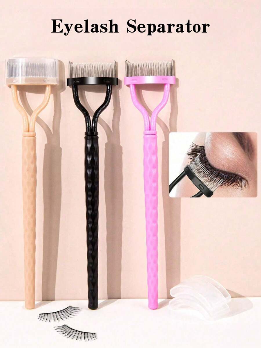 1/3pcs Stainless Steel Fine Tooth Lash Comb, Portable Eyelash Curler Separator Tools, Makeup Accessories,Eyebrow Brush,Eyeshadow Brush,Spoolie,Spoolie Brush