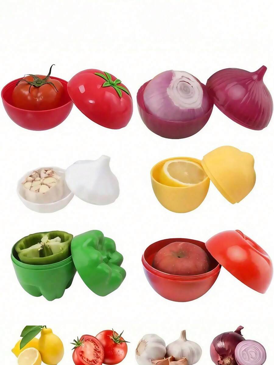 1/6pcs Fresh Container Set: Reusable PP Plastic Storage Containers For Fruits, Vegetables, Garlic, Onion And Lemon - Suitable For Camping, Meal Prep And Food Preparation, Essential Kitchen Organizer, Back To School Supplies