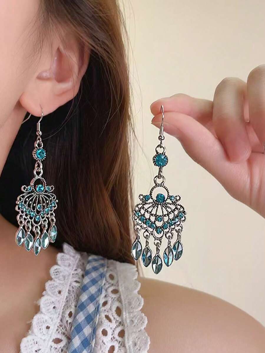 Vintage Handmade Crystal Teardrop Tassel Earrings, Luxury High-End Exquisite Earrings, Unique Design, Gift For Holidays