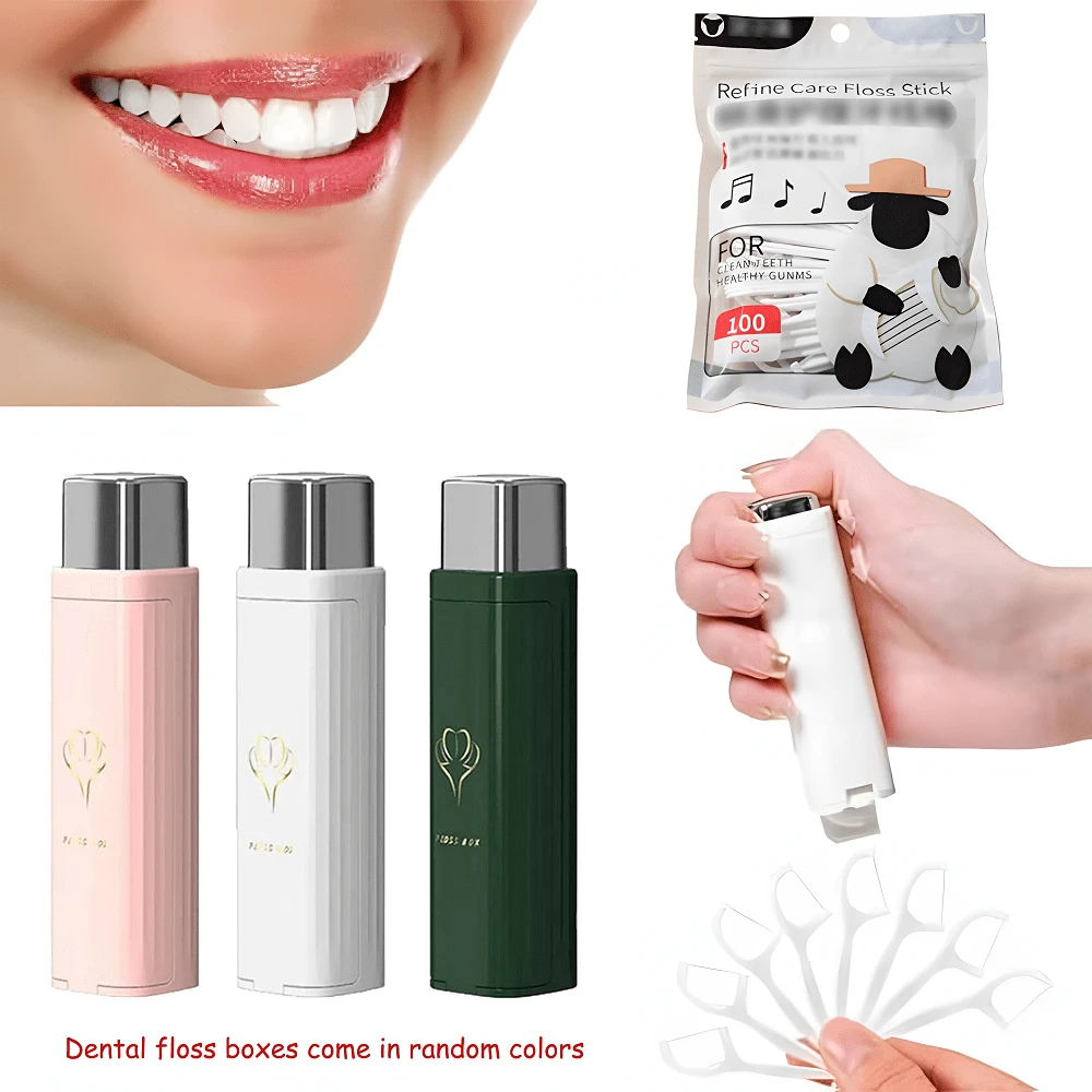 1 Set Automatic Pop-Up Floss Storage Box & 100pcs Disposable Dental Floss Picks To Refill, Press-Type Toothpick Box, Portable Dental Floss Dispenser, Tooth Dental Floss Picks Case