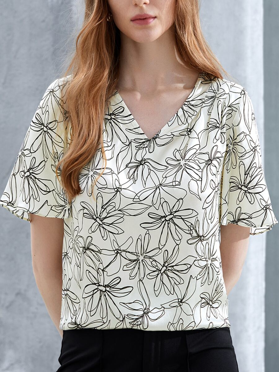 MOTF X HANNAH BROGER INSPIRED 100% SILK FLUTTER SLEEVE TOP