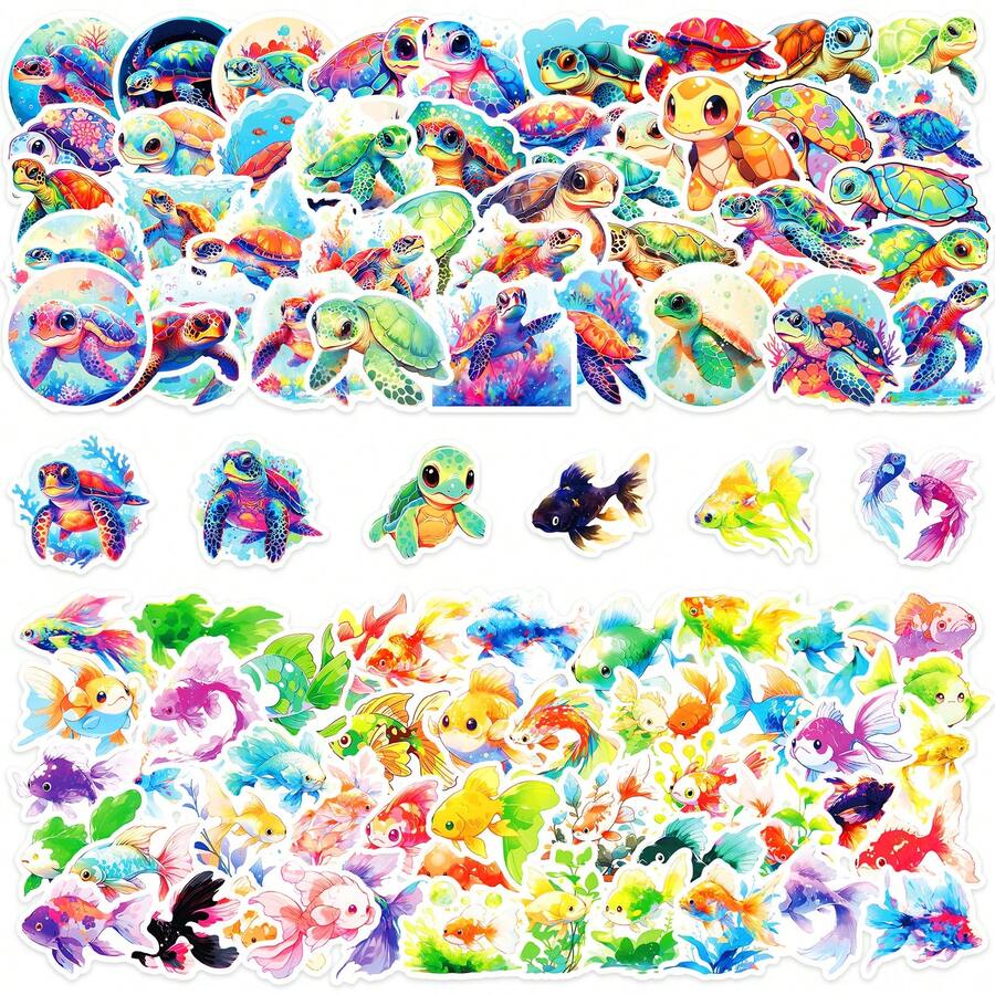 100Pcs Marine Life Stickers, Cute Sea Turtles Fish Waterproof Stickers For Laptop Phone Scrapbook Computer, Vinyl Funny Stickers For Teens Adults