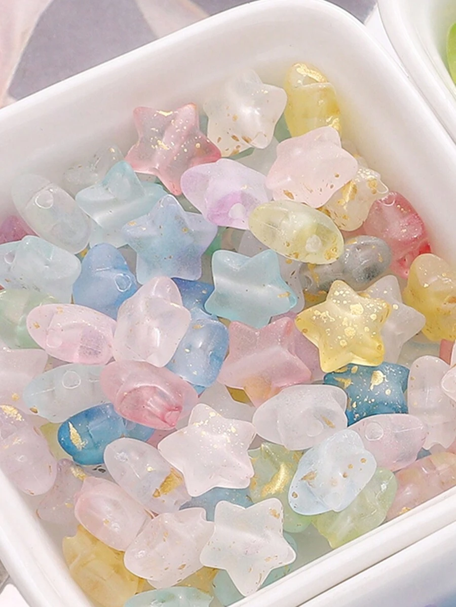 10g/Pack 10mm Shimmering Translucent Star Acrylic Beads - Smooth & Frosted Finish, Mixed Vibrant Colors - Perfect For Crafting & DIY Project