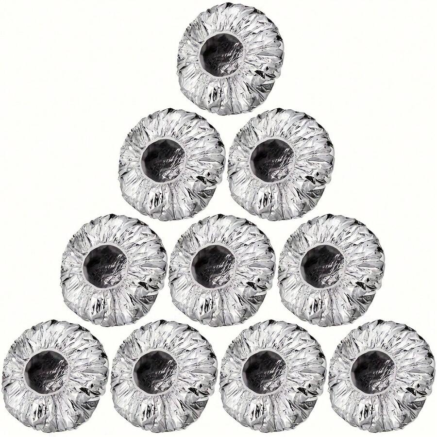 10pcs Reusable Elastic Foil Hair Caps, Suitable For Salons And Home Use, Beauty Tools, Waterproof Shower Caps