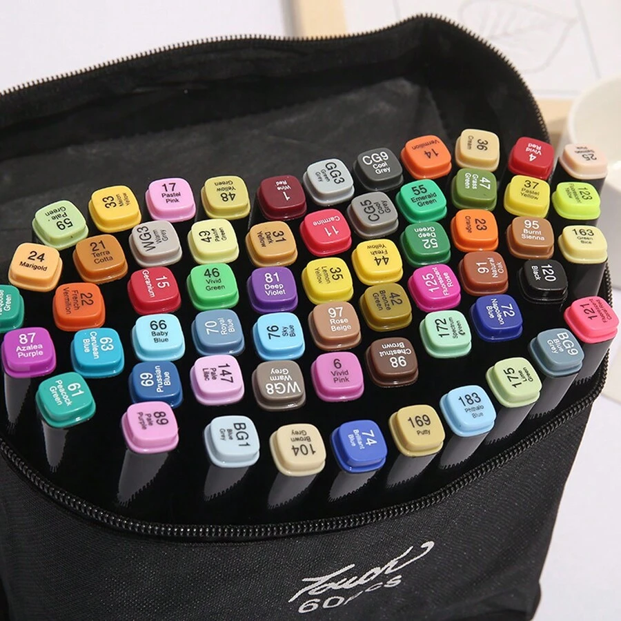 12/24/48/60/80pcs, Mixed Color Marker Pen Set, Personalized Dual Tip Acrylic & Watercolor Marker Set For Professional Comic, Drawing, Design And Art Using
