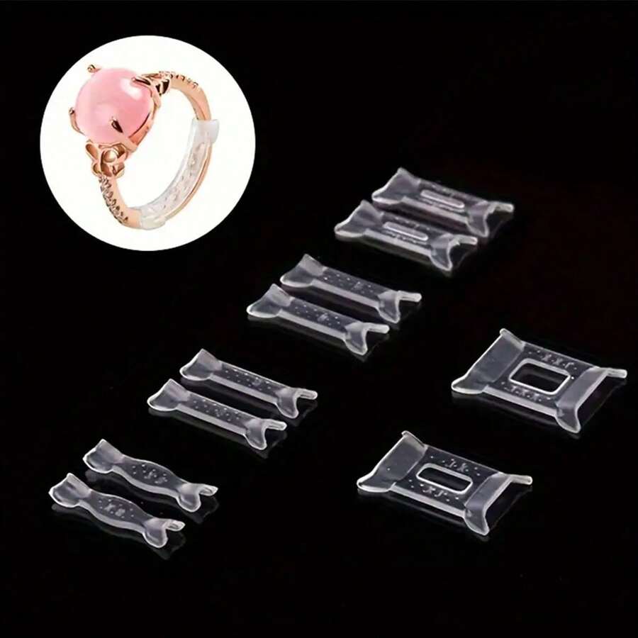 12/8pcs/Set Ring Adjustment Pad Ring Size Adjuster Fixed Loose Ring Size Rings Reduction Pad Wedding Rings Essentials With Silver Polishing Cloth