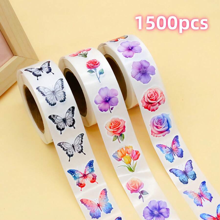 1500pcs Butterfly Flower Handbag Stickers DIY Luggage Notebook Flower Stickers Envelope Sealing Stickers Back To School