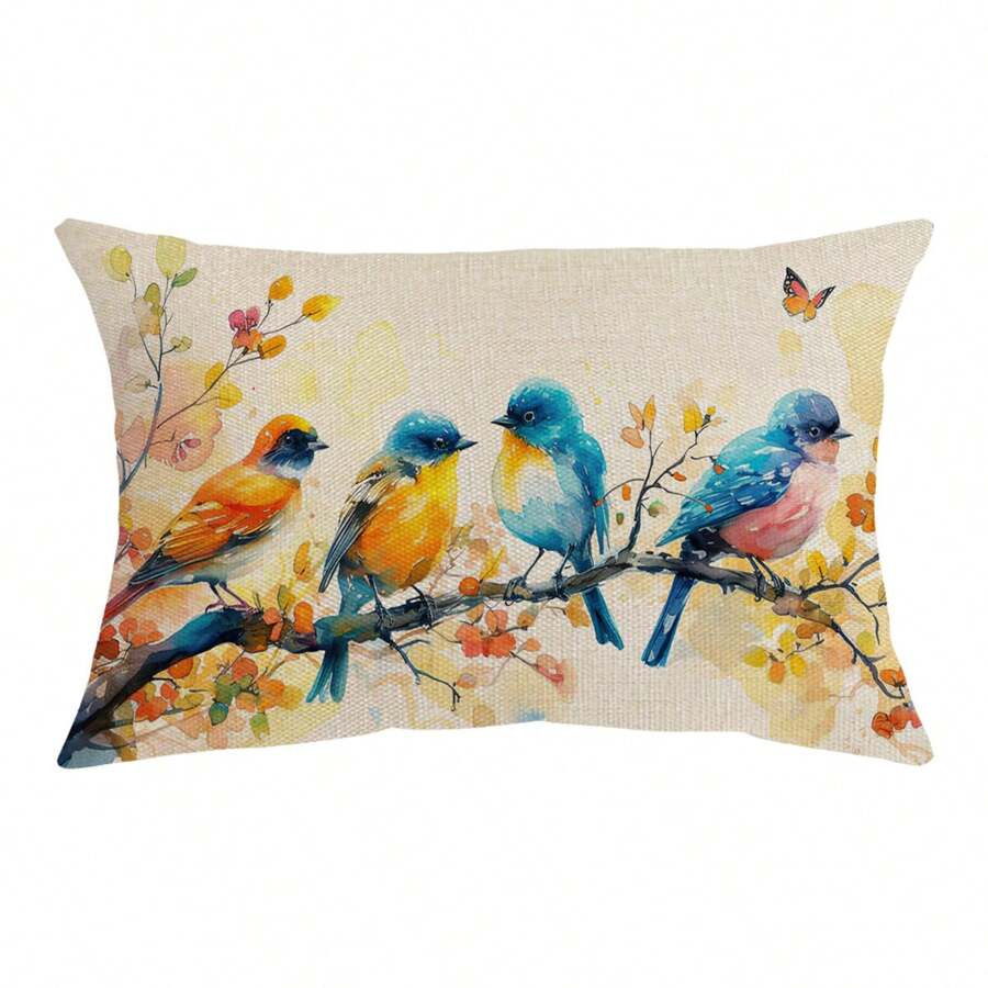 1PC Bird Pillow Cover , Winter Decor Home Decor, Rectangular Indoor Pillow Cover Cushion 12x20 Inch (Without Pillow Insert)
