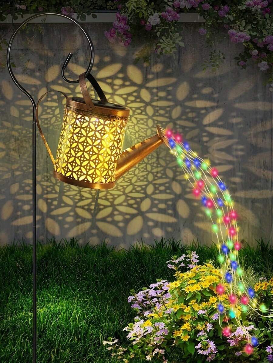 1PC Solar Garden Watering Can Coin Cylindrical Light,Waterproof Modern Kettle Design Solar Pathway Light For Garden