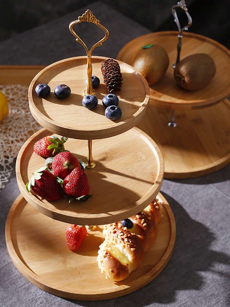 1PC Three Layered Rural Style Wooden Cake Rack, Circular Wooden Tray With Handle, Multifunctional Dessert Display, Elegant Layered Cupcake Rack, Suitable For Parties And Displays