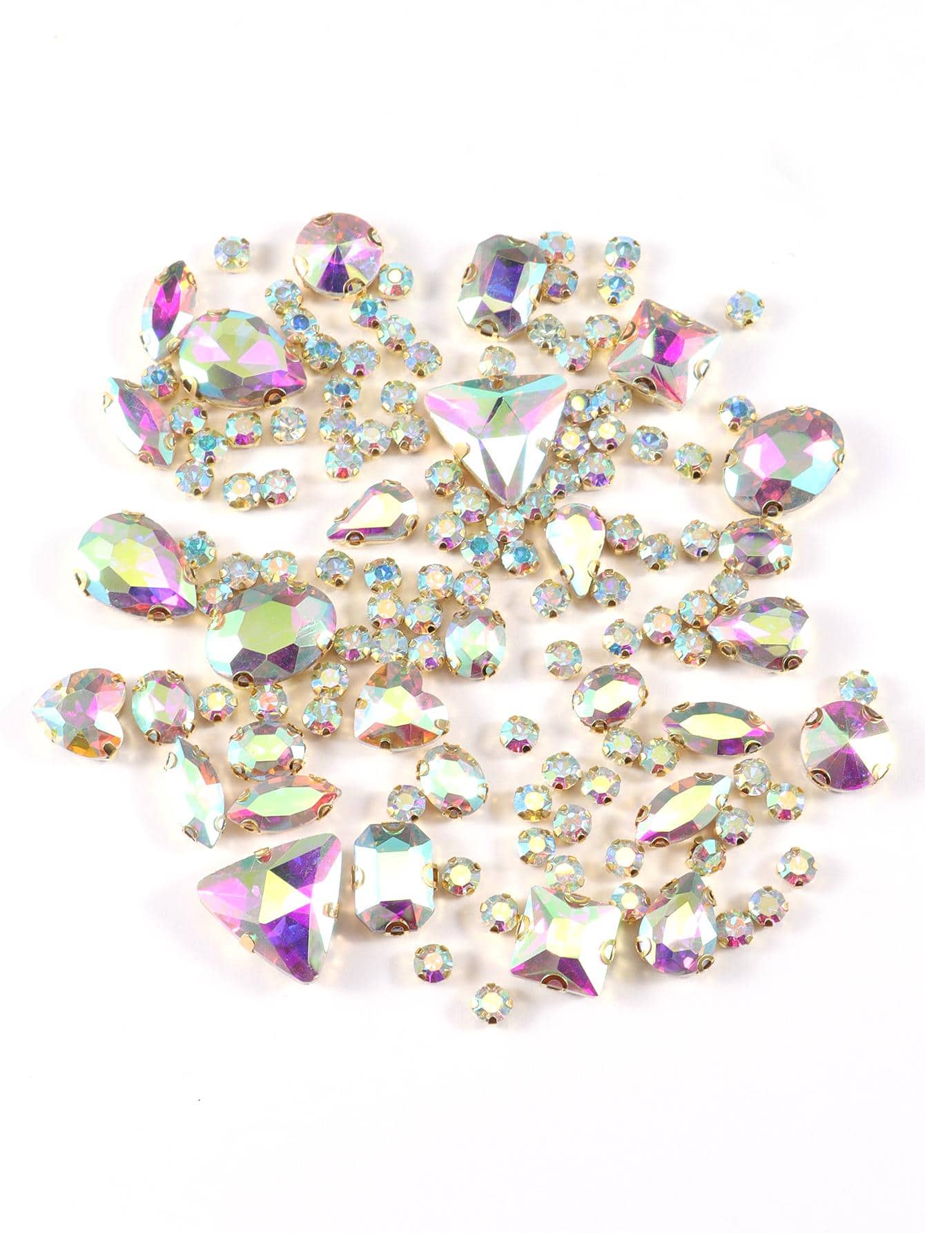 1pack About 130pcs Gold Metal Claw Sew On Rhinestones, Mixed Shapes Glitter Rhinestone Crystal Gems For Sewing Crafts, Silver