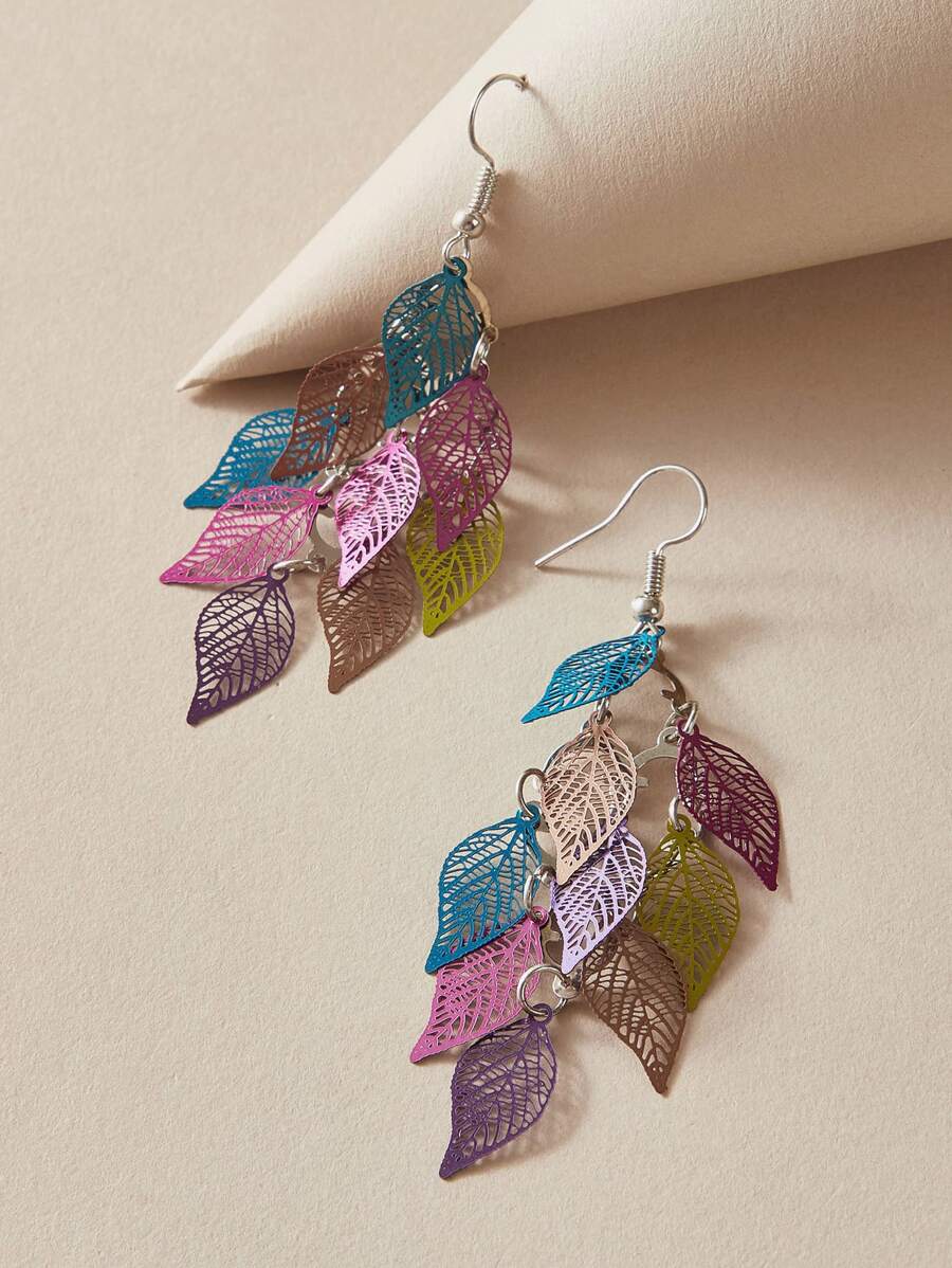 1pair Layered Leaf Drop Earrings