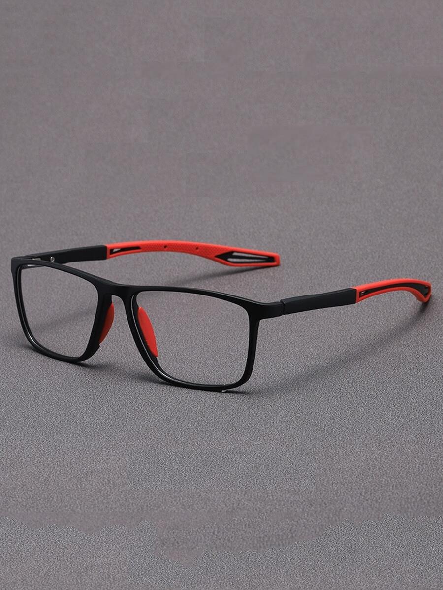 1 Pair Unisex Sports Style Square Frame Glasses, Two-Tone Patchwork Clear Lens Eyeglasses For Daily Wear, Outdoor, Cycling