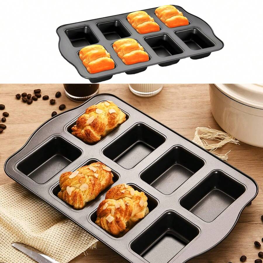 1pc/2pcs 8-Cavity Mini Rectangular Bread/Toast/Pound Cake/Hamburger Bun Mold, Non-Stick Baking Tray For Home Oven Use